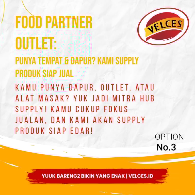 Detail Fs. usaha dan skema food partner dapat kami preview lebih lanjut! Silahkan hubungi Velces.